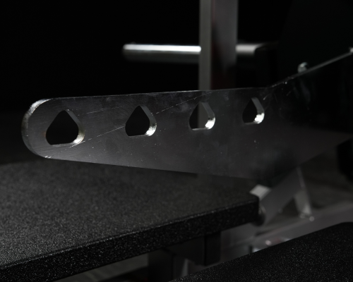 Front and rear weight rods allow for large weight loads and four belt anchor points provide varying resistance ratios. Wide, dual foot platforms include a separation gap to help prevent marring from the belt and chain. The Belt Squat also features band pegs (with nearly 1:1 load effect when used), long handles to accommodate users of all sizes, and a storage hanger for the belt and hook for added convenience.